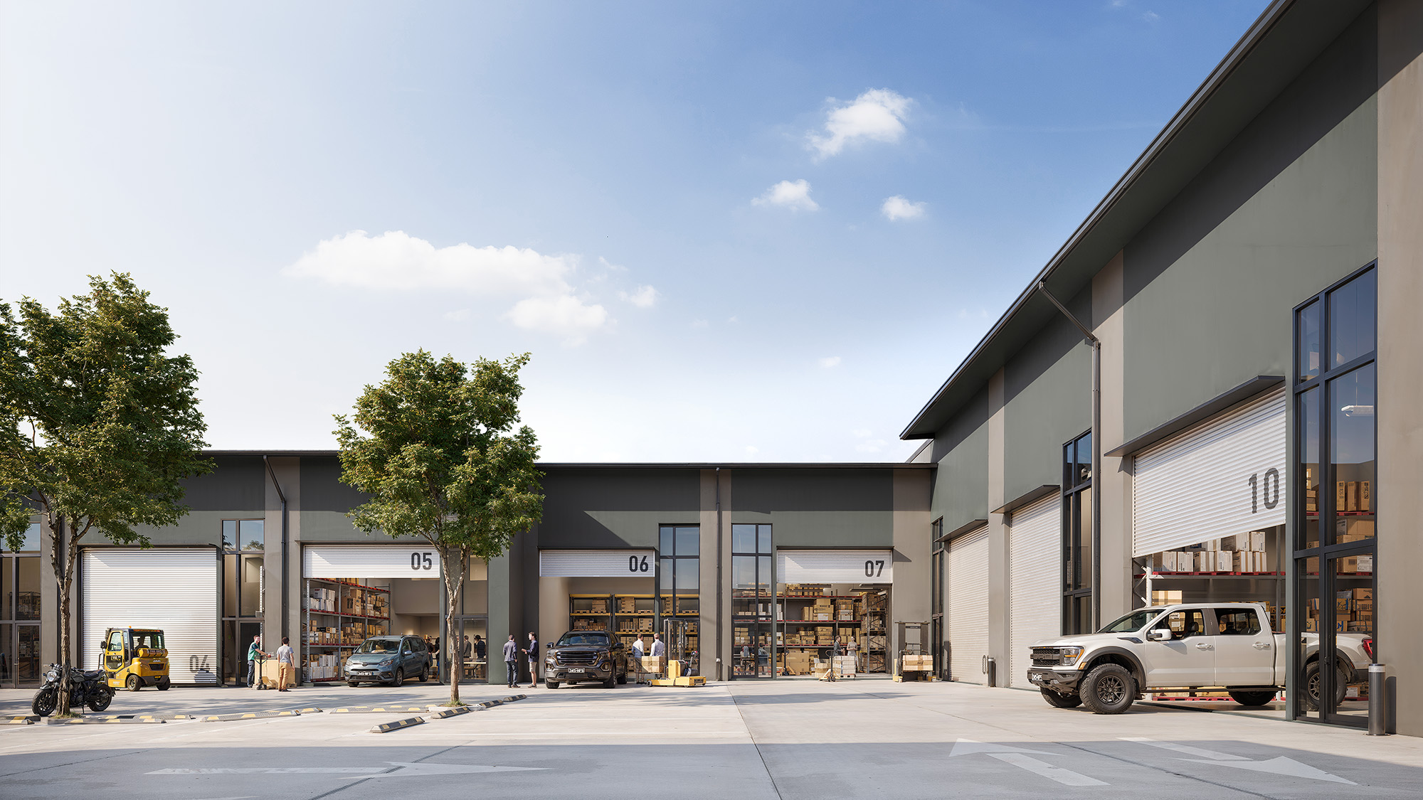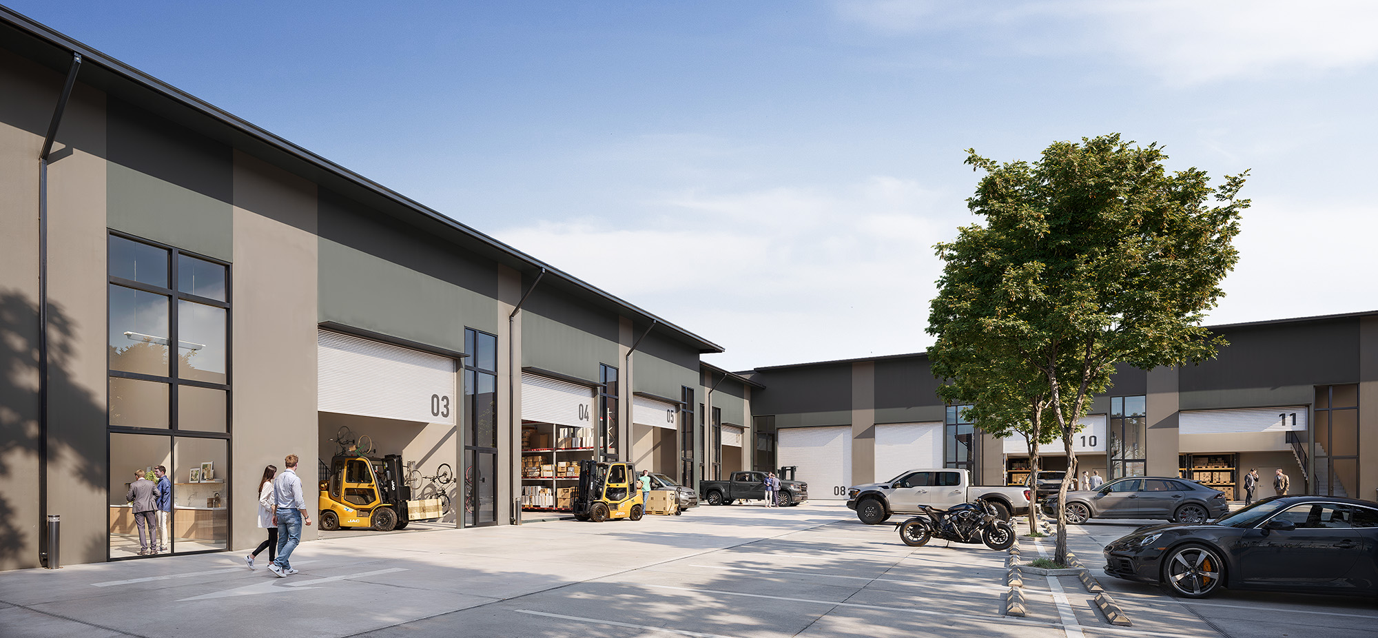 The estate offers flexible tenancy sizes from 90–266 sqm, with most warehouses featuring functional mezzanines, on-title car parking, and secure 24/7 electric gate access. 8.7-metre internal pathways support efficient vehicle movement, making the development suitable for a wide range of commercial and industrial users.